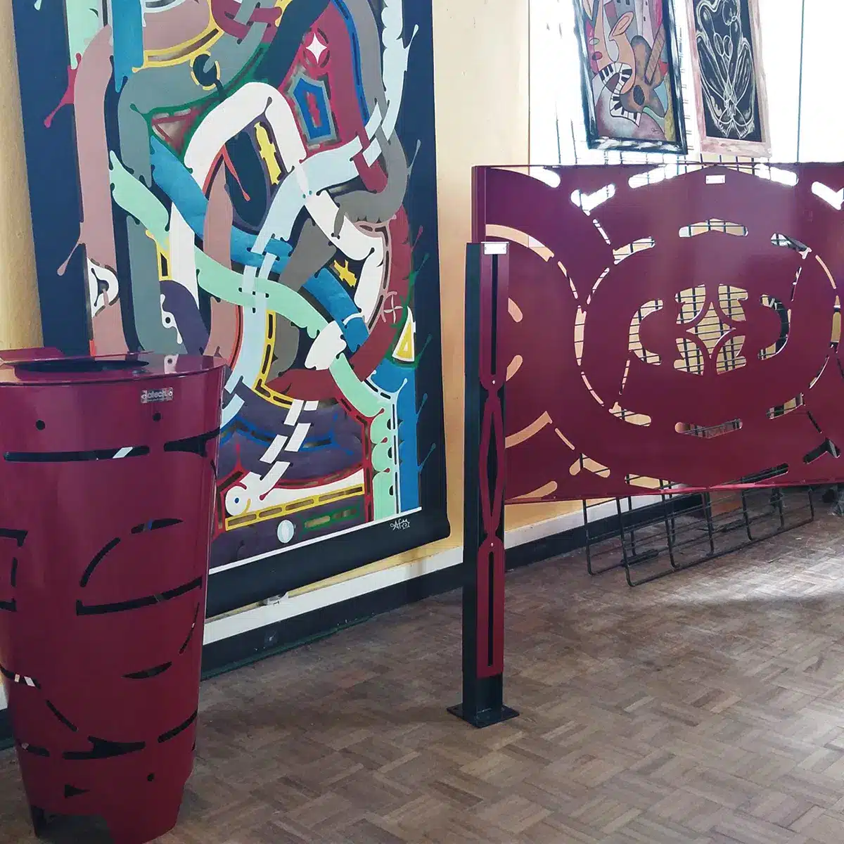 En collaboration avec Signaux Guyane et Franky AMETE, ATECH a conçu une déclinaison de sa gamme SYNERGIE intégrant l’Art Tembé. Pour répondre à la demande, une découpe laser spécifique a été réalisée sur les panneaux en acier peint, permettant de faire rayonner la culture locale à travers le mobilier urbain.